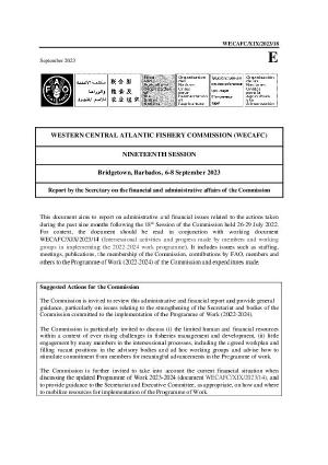 MeetingMeeting documentWECAFC - Nineteenth Session - Bridgetown, Barbados, 6-8 September 2023 - Report of the ELEVENTH SESSION OF THE SCIENTIFIC ADVISORY GROUP OF THE WESTERN CENTRAL ATLANTIC FISHERY COMMISSION Virtual session, 25–27 April 2022