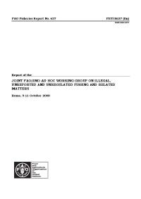 Book (series)Technical reportReport of the Joint FAO/IMO Ad Hoc Working Group on Illegal, Unreported and Unregulated Fishing and Related Matters. Rome, 9-11 October 2000. 2001