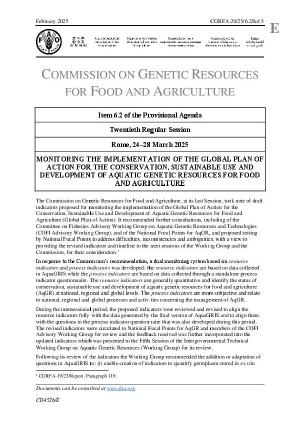 MeetingMeeting documentMonitoring the implementation of the Global Plan of Action for the Conservation, Sustainable Use and Development of Aquatic Genetic Resources for Food and Agriculture 2025