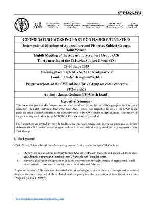 MeetingMeeting documentCWP Intersessional Meetings of Aquaculture and Fisheries Subject Groups Joint Session - 28- 30 June 2023 - Terms of reference of the CWP ad-hoc Task Group 2 on catch concepts (TG-catch2) – Version 1.0 - 2023