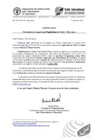 MeetingMeeting documentNotification: Envoi d’informations relatives à l’application de l’Article 6 du Traité : Utilisation durable des ressources phytogénétiques