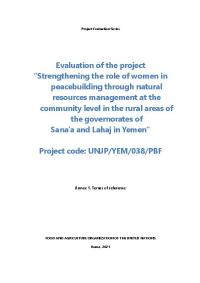 Book (series)Evaluation reportEvaluation of the project “Strengthening the role of women in peacebuilding through natural resources management at the community level in the rural areas of the governorates of Sana’a and Lahaj in Yemen”