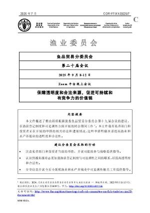 渔业委员会. 鱼品贸易分委员会. 第二十届会议, 2025年9月8-12日, Zoom平台线上会议 - 保障透明度和合法来源,建设可持续和有竞争力的价值链