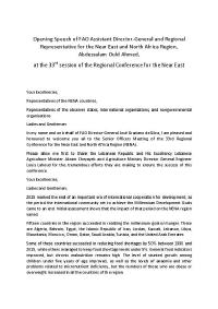 MeetingMeeting documentOpening Speech of FAO Assistant Director-General and Regional Representative for the Near East and North Africa Region, Abdessalam Ould Ahmed, at the 33rd session of the Regional Conference for the Near East
