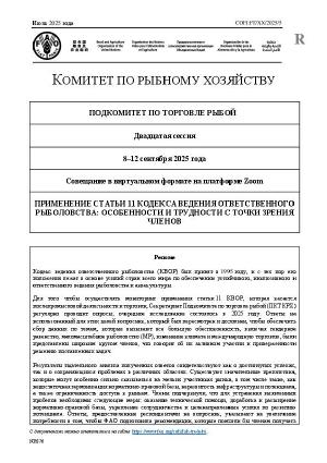 Комитет по рыбному хозяйству. Подкомитет по торговле рыбой. Восемнадцатая сессия8 апреля – 8 мая 2022 года (рассмотрение по переписке). 7, 8, 9 и 20 июня 2022 года (сессия в виртуальном формате). Применение статьи 11 Кодекса ведения ответственного рыболовства: особенности, трудности и перспективы с точки зрения членов ФАО