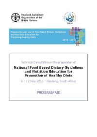 No results found.Programme of activities and meeting agenda for Technical Consultation on the preparation of National Food Based Dietary Guidelines and Nutrition Education for Promotion of Healthy Diets. -