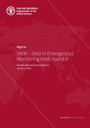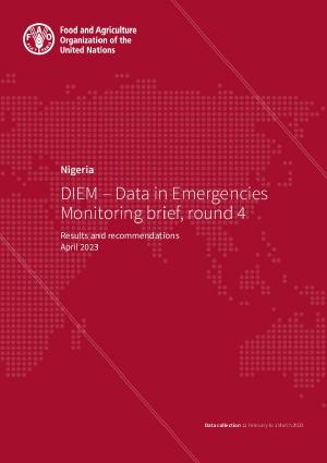 No results found.This Data in Emergencies Monitoring (DIEM-Monitoring) brief shares the results of a sixth-round assessment conducted in January and February 2024 in Nigeria. It presents key findings and recommendations for humanitarian actors to utilize in planning and implementing data-driven programming to sustain farmers’ livelihoods and build their resilience to future shocks – protecting the food security of rural people in Nigeria. The Food and Agriculture Organization of the United Nations (FAO) established the DIEM-Monitoring System to collect, analyse and disseminate data on shocks and livelihoods in countries prone to multiple shocks. DIEM-Monitoring aims to inform decision-making by providing regularly updated information on how different shocks are affecting the livelihoods and food security of agricultural populations. Information is collected from primary sources in the production process: producers, traders or marketers, input suppliers, extension officers and other key informants. -