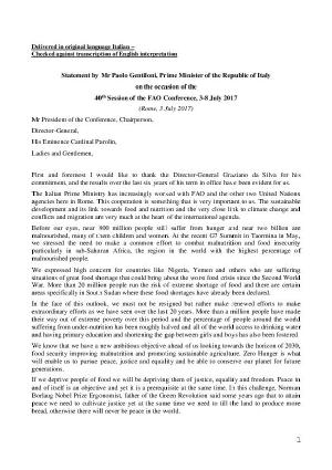 MeetingMeeting documentC 2017/Statement - Statement by the Independent Chairperson of the Council to the 40th Session of the FAO Conference 2017