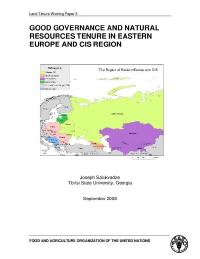 DocumentWorking paperGood Governance and Natural Resources Tenure in Eastern Europe and CIS Region 2009Land tenure working paper 3. This document reflects the policies, status and trends of governance in Eastern Europe and in the Commonwealth of Independent States (CIS). The study assesses the state of governance and evaluates the ability of countries to contribute to the elaboration of FAO’s Voluntary Guidelines on Responsible Governance of Tenure of Land and other Natural Resources.