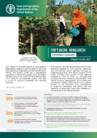 No results found.This summary progress report provides highlights and key programme achievements of the FAO Cox's Bazar office. Cox’s Bazar, a vulnerable district in south-eastern Bangladesh, is a priority area which is politically sensitive. The region, which has a Bangladeshi population of 2.65 million people, hosts the largest refugee population in the world with 926 561 Rohingya who reside in 33 makeshift camps. The area is prone to seasonal cyclones and monsoons. This is the fourth in a series of regular updates aimed primarily at international donors.