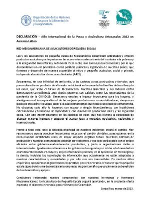 DocumentOther documentDeclaración: Año Internacional de la Pesca y Acuicultura Artesanales 2022 en América Latina