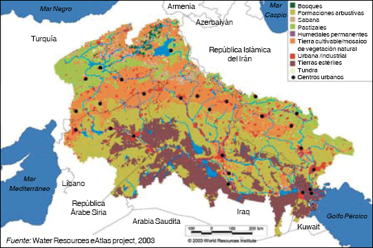 Las aguas de la cuenca del Tigris y el Éufrates han sustentado una civilización por más de 6 000 años. Como abarca 76,6 millones de hectáreas, la cuenca es de gran importancia para el balance hídrico en Iraq, la República Árabe Siria y Turquía, y también se extiende a la República Islámica del Irán.