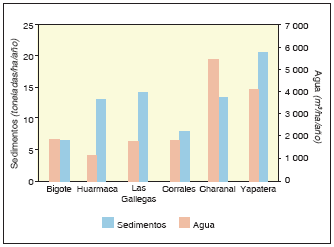 Se consideró que las intervenciones serían mayormente beneficiosas para las subcuencas Yapatera y Charanal, que son las más erosionadas (Figura 2). A pesar de ser las subcuencas más pequeñas y ocupar solo el 15,4 por ciento de la superficie total, juntas representan el 38 por ciento de la producción de sedimentos y suministran el 23 por ciento del agua entregada por las seis subcuencas del río Piura.