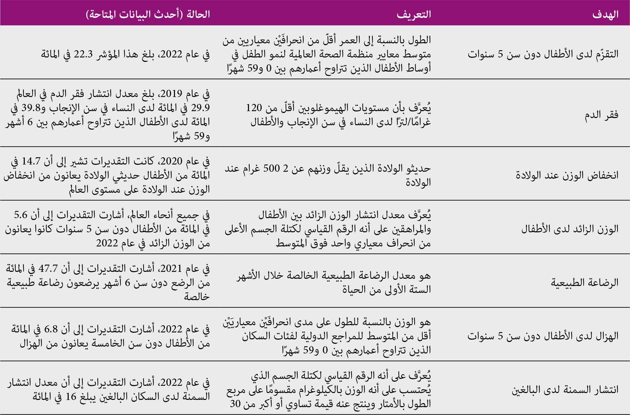 الإطار 2-5الأهداف العالمية للتغذية