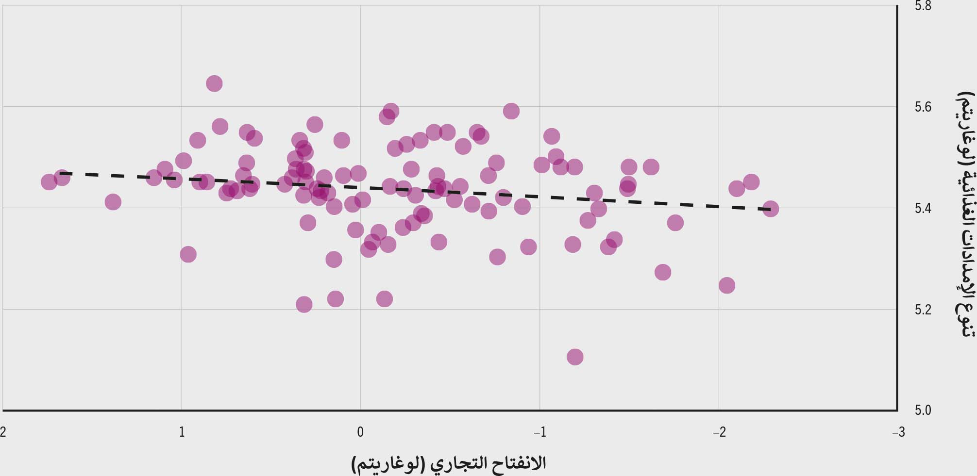الشكل 3-4العلاقة بين الانفتاح التجاري وتنوع الإمدادات الغذائية، 2020