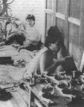 Until recently, most efforts aimed at development of artisanal crafts production were based on the establishment of urban-based small-scale industrial enterprises, with mixed results. A case in point is a programme in Central Java which set up a factory to manufacture high-quality European- and English-style furniture for the export market. With excellent resources, including a sophisticated wood-drying kiln and state-of-the-art machinery, the programme employs several hundred workers, men and women. Traditional wood-carvers were recruited from the region of Jepara (historically known for its fine artisans) to make hand-carved components for the furniture.