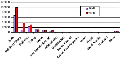 Figure 2: Growth in agricultural production in Asia, 1997–2007
