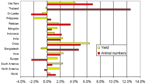 However, regional average yields, at less than 1 tonne per animal, remain below the global average and only one-tenth of the developed country average (Table 2).
