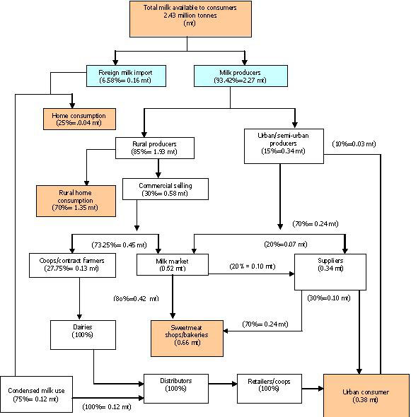 Milk production information from the Directorate of Livestock Services, processing information from dairy plants and flow data estimated from market operation /tendency.