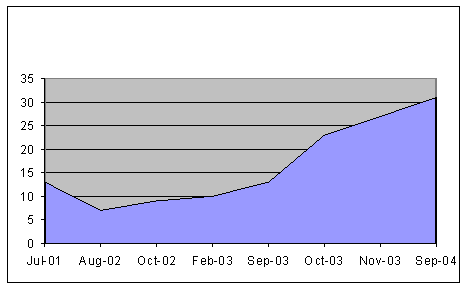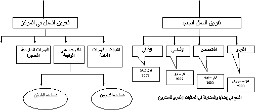 في نهاية المرحلة الثانية من المشروع يمكن القول بأن "مرحلة الحضانة" للمركز قد انتهت . وفي الواقع فقد وصل فريق العمل إلى العدد المقرر كما هو مبين في الإطار 12 بينما تم إقرار خطة عمل الفترة 2004-2007 مع الهيكل التنظيمي الجديد الذي تم تصميمه بمساعدة المساعدة المؤسسية التي قام المشروع بتوفيرها وذلك بناءً على الخبرة التي تم اكتسابها في السنوات السابقة . وقد تم تبني الهيكل التنظيمي الجديد ليتم تنفيذه بشكل تجريبي في النصف الثاني من عام 2004 عند عودة عناصر فريق العمل من الخارج .