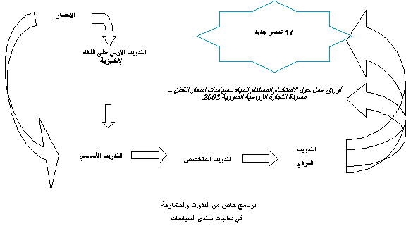 بدأت سورية في أواخر الثمانينات عملية الإصلاح الاقتصادي التدريجي بهدف التحرير المحلي وتشجيع القطاع الخاص وزيادة التكامل مع الاقتصاد العالمي . وكجزء من هذه العملية فقد بدأت الإجراءات الحكومية المتخذة في القطاع الزراعي الذي تميز لسنوات عديدة بالتخطيط المركزي والتدخل الحكومي الكبير في مجال تحديد الأسعار وتسويق المنتجات بالاتجاه نحو زيادة التركيز على الحوافز الاقتصادية . وقد انطوى ذلك على إفساح مجال أوسع أمام القطاع الخاص وتخفيف نظام التخطيط والتوجه نحو التخطيط التأشيري وتطبيق مبدأي اللامركزية والتشاركية. وضمن هذا المناخ الجديد ظهرت الحاجة لتطوير الإمكانات الفنية والمؤسسة الجديدة في عملية صنع السياسات الزراعية ، مما دفع سورية لطلب المساعدة الفنية من منظمة الأغذية والزراعة. وقد قدمت الحكومة الإيطالية دعماً مالياً كريماً من خلال منظمة الأغذية والزراعة لتنفيذ مشروعين : GCP/SYR/002/ITA (حزيران 1995-أيلول 1996) الذي ركز على تطوير بعض المهارات الخاصة من خلال التدريب أثناء الخدمة ومشروع GCP/SYR/006/ITA (نيسان 1998-حتى الآن) الذي تبنى منهجاً متكاملاً لتطوير المقدرات والتطوير المؤسسي وركز على إنشاء وتطوير المركز الوطني للسياسات الزراعية (NAPC) . يتكون مشروع GCP/SYR/006/ITA من ثلاثة مراحل تقابل المراحل المتتالية لتطوير المقدرات والتطوير المؤسسي في المركز كما هو مبين في الإطار 1 . |