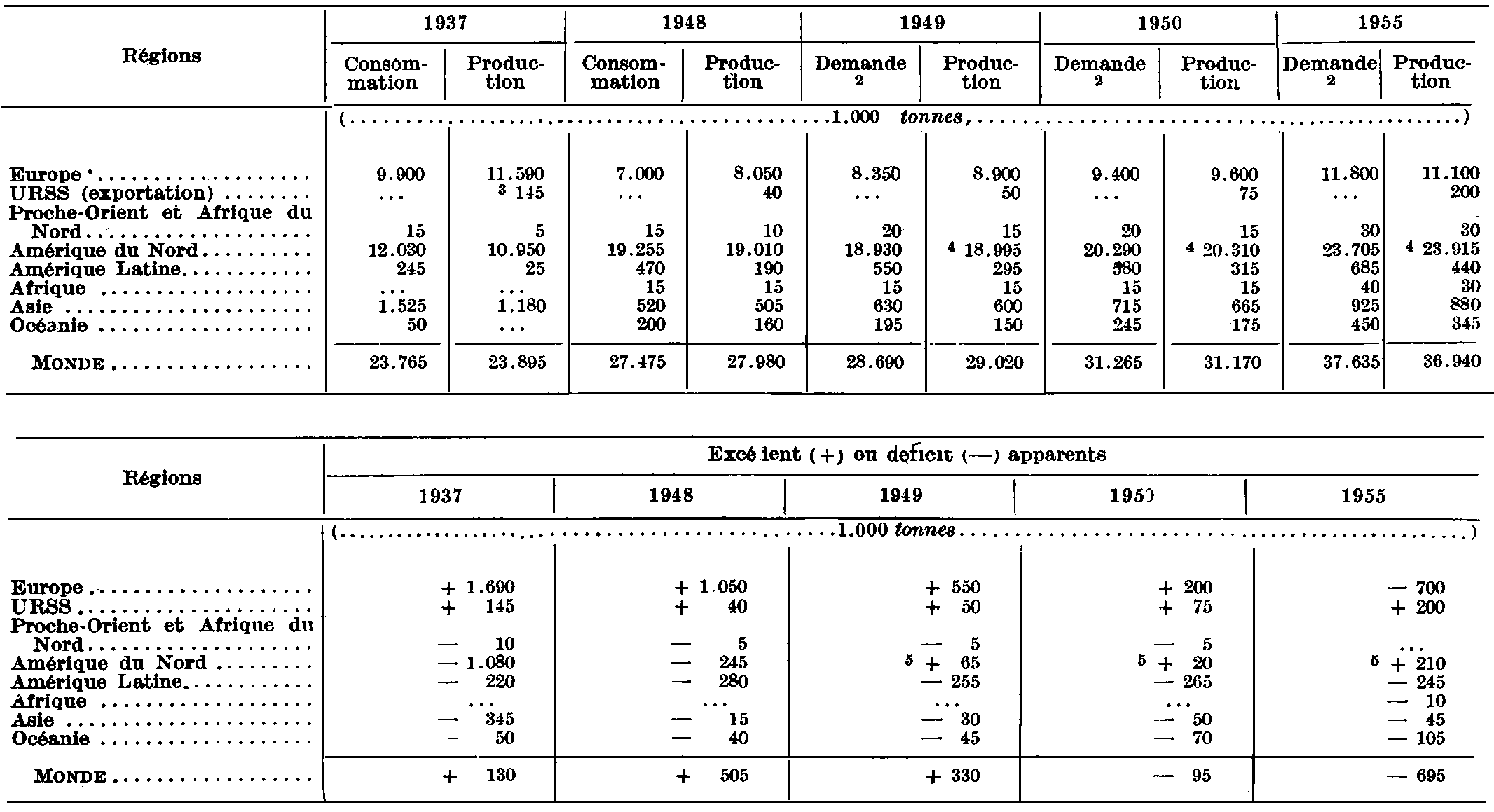 5 Comme on l'indique dans le texte, on pense généralement que l'Amérique du Nord continuera à avoir un excédent d'importation. Le calcul sur lequel sont basés ces chiffres d'excédents admet que la production sera maxima ce qui n'est pas nécessairement vrai. Le surplus figurant ici n'est que le résultat des calculs mathématiques.