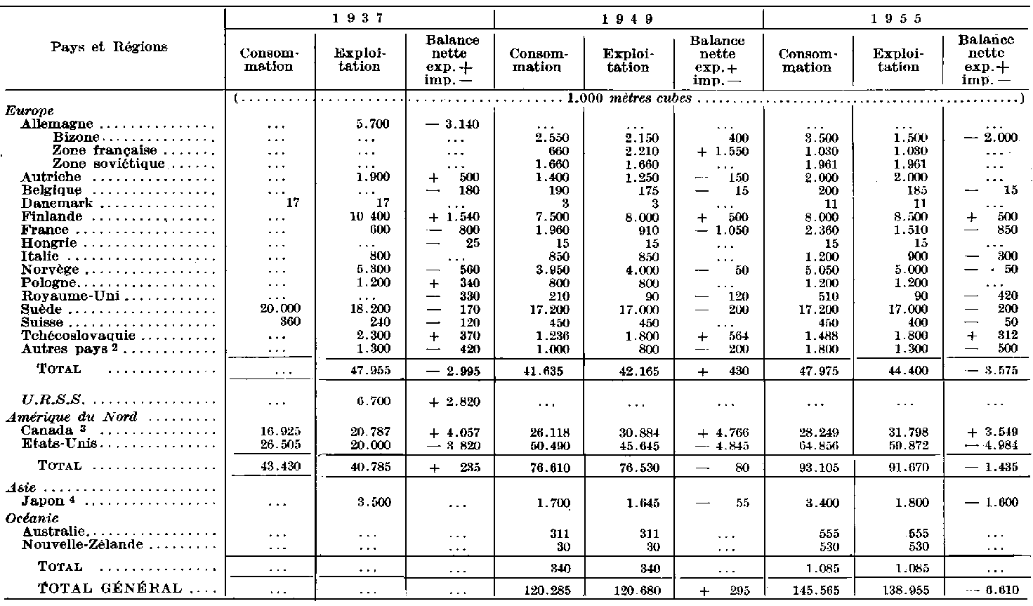 ² Y compris 48.000 m³ de production allemande en 1946 et 2.000 m³ en 1947