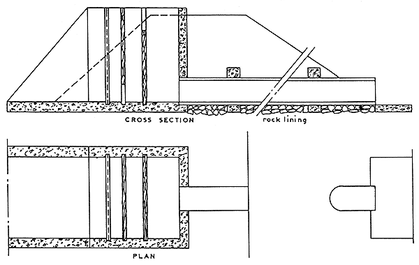 The typical, universally used structure is called “monk sluice”, made of reinforced concrete, with Hume type culverts.