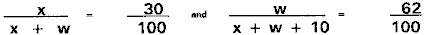 out of which x and w can be solved (x = 23.3; w = 54.3).