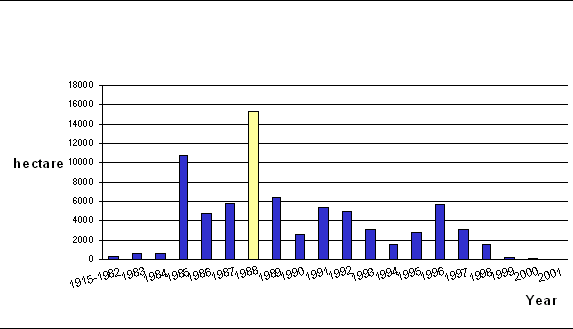 ha were planted in 1988 and more than 10 000 ha in 1985, which is 20 and 15