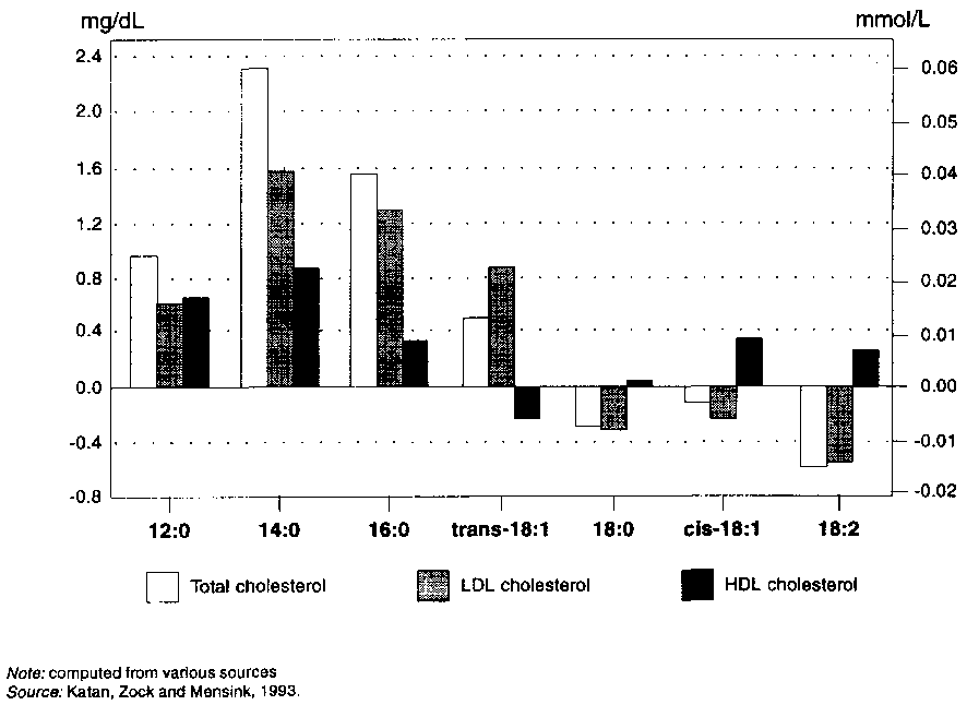 FIGURE 9.1 : Effects of individual dietary fatty acids on serum total and lipoprotein cholesterol