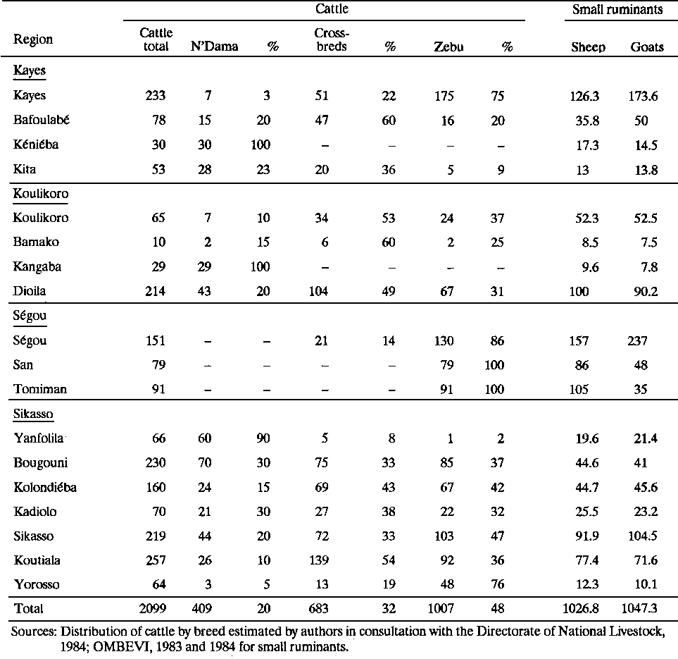 Table 2. Livestock numbers and distribution in Mali ('000).