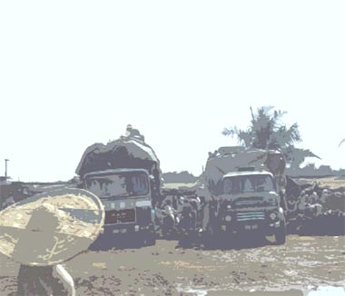 In many countries the initial transportation may be the farmer or his labourer, carrying the produce themselves or using animal-drawn carts. Alternatively, traders may send agents around to farmers to collect produce for assembly in one central area. Transport costs will vary according to the distance between farmer and market. But they will also depend on the quality of the roads. A farmer living close to a main highway will probably face much lower transport costs than one living at the end of a rough road which causes much damage to trucks and is frequently impassable. Transport costs will be lower in countries where trucks and fuel are cheap than in countries where import duties are high. Truck owners have to buy their trucks; costs will be lower where bank interest charges are low than where they are high.