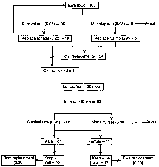 TABLE 5.2 - Internal Structural Coefficients and Annual Activity Budget for a Self-sustaining Flock of 100 Ewes