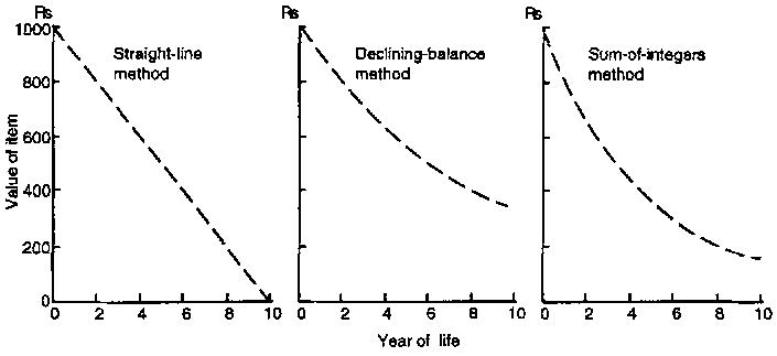 Ideally, the annual depreciation of a capital item should be measured in terms of its actual wear and tear due to usage and the change in its degree of obsolescence (Barnard and Nix 1973, pp. 85-88; Doll and Orazem 1984, pp. 260-267). This would imply much inconvenient record keeping not worth its cost. Instead, it is assumed that usage of the item and the accompanying flow of service from it follow some regular pattern and depreciation is estimated accordingly (Thuesen 1959, Ch. 5). Thus there are four main methods of calculating annual depreciation 'cost' or the annual rate at which a capital item provides services and is thereby used up or becomes obsolete. Three of these methods are briefly discussed here. (The fourth, which involves the application of amortization procedures, is outlined in Section 10.10.)