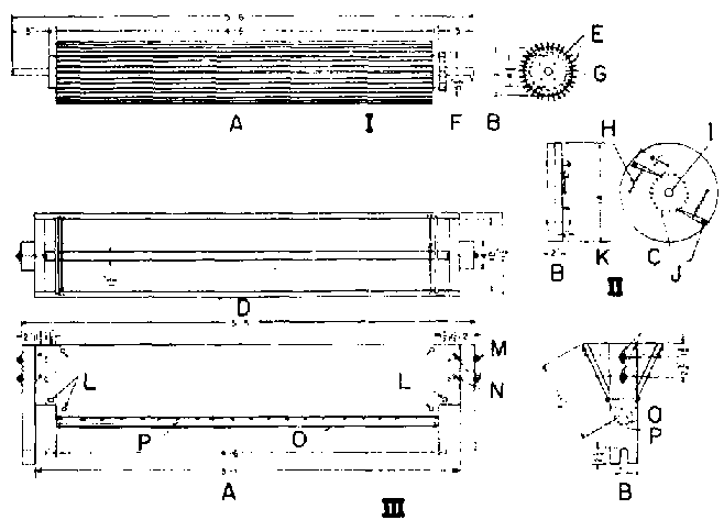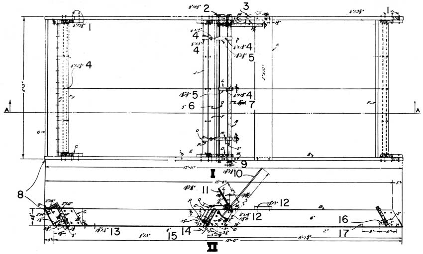 20. Arbre d'acier, ¾ in. (19 mm), avec tube de 1 in. (25,4 mm) - longueur 3 in. (76 mm) - formant coussinet, fixé aux supports par des étriers de ¼ in. (6,35 mm) de diamètre.