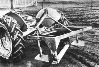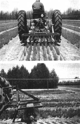 Un certain nombre d'arracheuses utilisées pour l'extraction des plants peuvent également être employées pour le cernage dans un plan horizontal. La pépinière de l'«Industrial Forestry Association» à Nisqually, Washington, a mis au point une machine spéciale, équipée d'une lame oblique, qui donne même de meilleurs résultats pour le cernage que pour l'arrachage (figure 37).