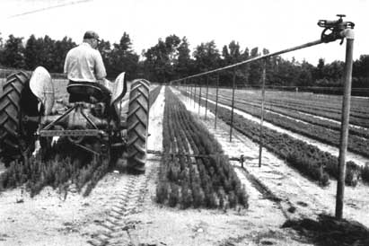 Comme le montre le tableau l, on peut produire approximativement un million de semis de conifères sur une acre à la densité de 30 plants par square foot (2 500000 semis à l'hectare avec une densité d'environ 350 au mètre carré). Des plants résineux repiqués en lignes espacées de 6 inches (15 cm) seront au nombre de 400 000 environ par acre (1 million environ à l'hectare). Pour des feuillus repiqués à distance, la production à l'acre sera de 150 000 plants utilisables (370 000 à l'hectare environ).