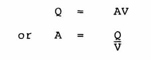 When velocity is calculated by the Manning's formula, within the permitted limit and the total run-off is estimated, the necessary area (A) then can be obtained by the above formula.