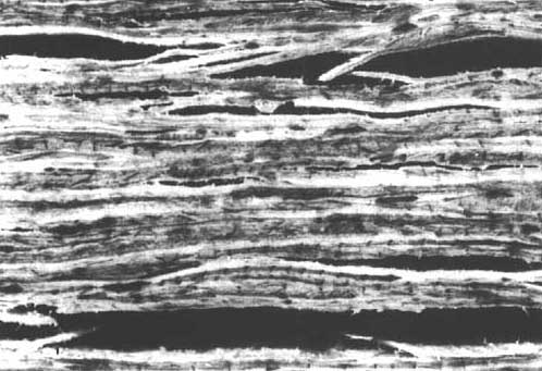 La figure 3 montre la nature anisotropique du bois considérée du point de vue de l'ingénierie. Là encore la plus grave discordance réside dans la différence de résistance à la traction dans le sens du fil ou en travers du fil, différence de l'ordre de 1 à 50 pour le cas du bois de sapin Douglas net de défauts apparents. Lorsqu'il y a des défauts dans les sciages destinés à la construction, ils provoquent une diminution considérable de la résistance à la traction parallèle, mais malgré le manque de données suffisamment précises, ils ne causent, semble-t-il, que des changements mineurs dans les autres propriétés.