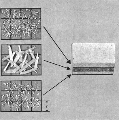 6 Technique de stratification A gauche: âme en flocons, surfaces en particules.