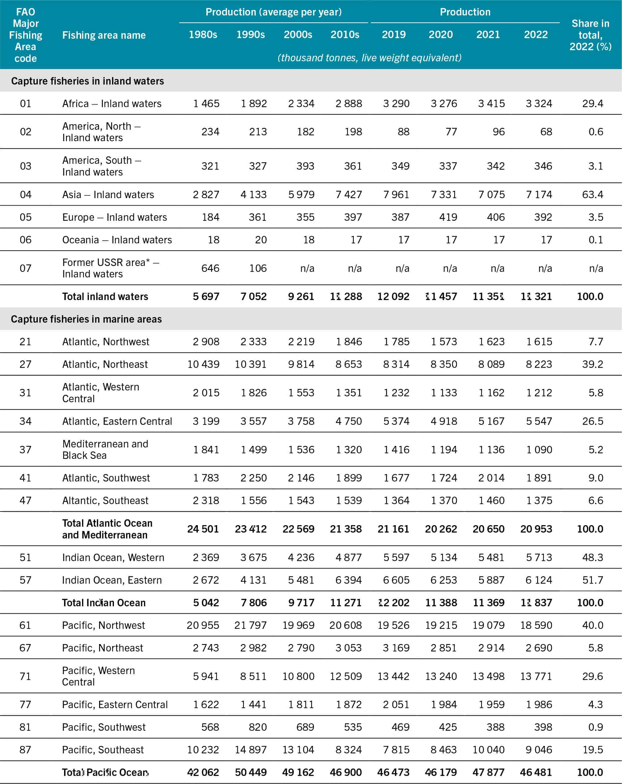 SOURCE: FAO. 2024. FishStat: Global capture production 1950–2022. [Accessed on 29 March 2024]. In: FishStatJ. Available at: www.fao.org/fishery/en/statistics/software/fishstatj. Licence: CC-BY-4.0.