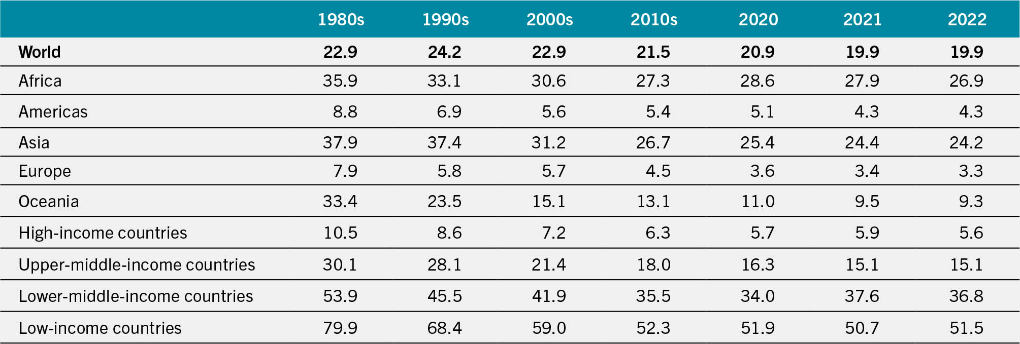 Population data are based on United Nations Population Division. 2022. World Population Prospects 2022. [Accessed on 13 January 2023]. https://population.un.org/wpp