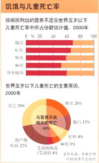 大量事实清楚地表明,消除饥饿和营养不良每年可拯救数百万人的生命。20世纪九十年代期间,一项对有助于减少儿童死亡率若下因素调查的研究结果证实了这一结论。其中,减少那些营养不良并缺乏足够饮用水、缺乏卫生设施及住宿条件儿童的比例是最为重要的。