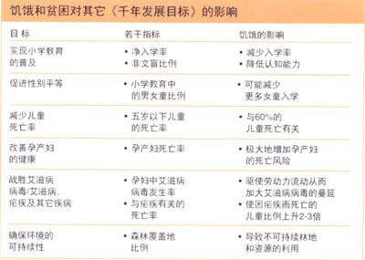 虽然贫困无疑是饥饿的根源,但饥饿也同样是贫困的根源。饥饿往往剥夺贫困人民可称之为他们自己的一种宝贵资源:即从事有效生产的力量和技能。诸多研究已经证实,饥饿严重地削弱了贫困人口发展其技能的能力,也降低了其劳动生产力。