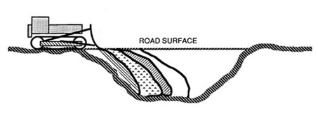 the cut slope smoothed and rounded. The portion of pioneer road or platform