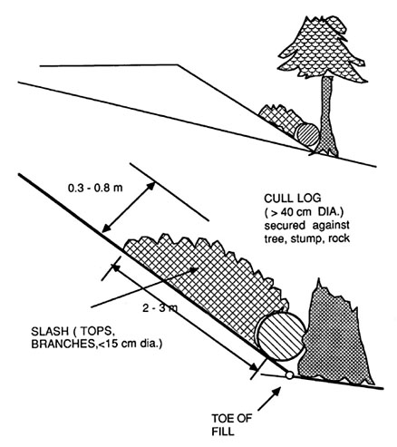 m from the top of the cut or toe of the fill (Figure 105). The logs can