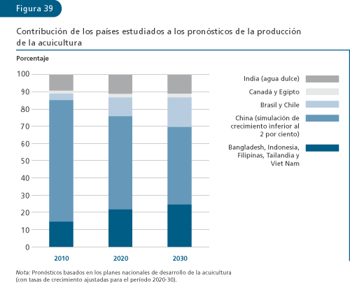 63 Estas hipótesis se basaron en la estimación de que la acuicultura en China continuaría creciendo, pero a un ritmo inferior, durante los próximos 8-10 años, es decir, a una tasa prevista del 2-4 por ciento al año.