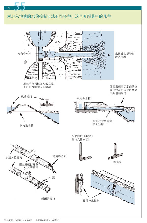 Muir和Lombardi(2000年)对有关池塘堤岸修筑方面的情况作了介绍,而且粮农组织(1995年)对建筑细节也有所论述。