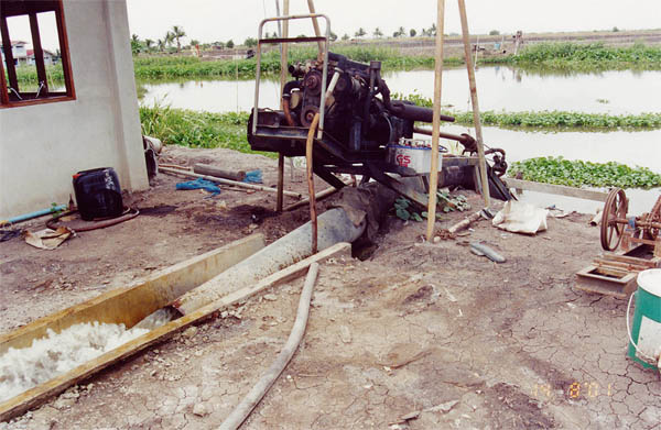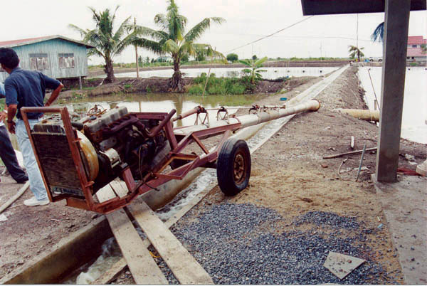 图61 长尾泵被用来从泰国一个灌溉渠中抽水并输送到淡水虾养殖池塘(这类泵还可以用于池塘排水)